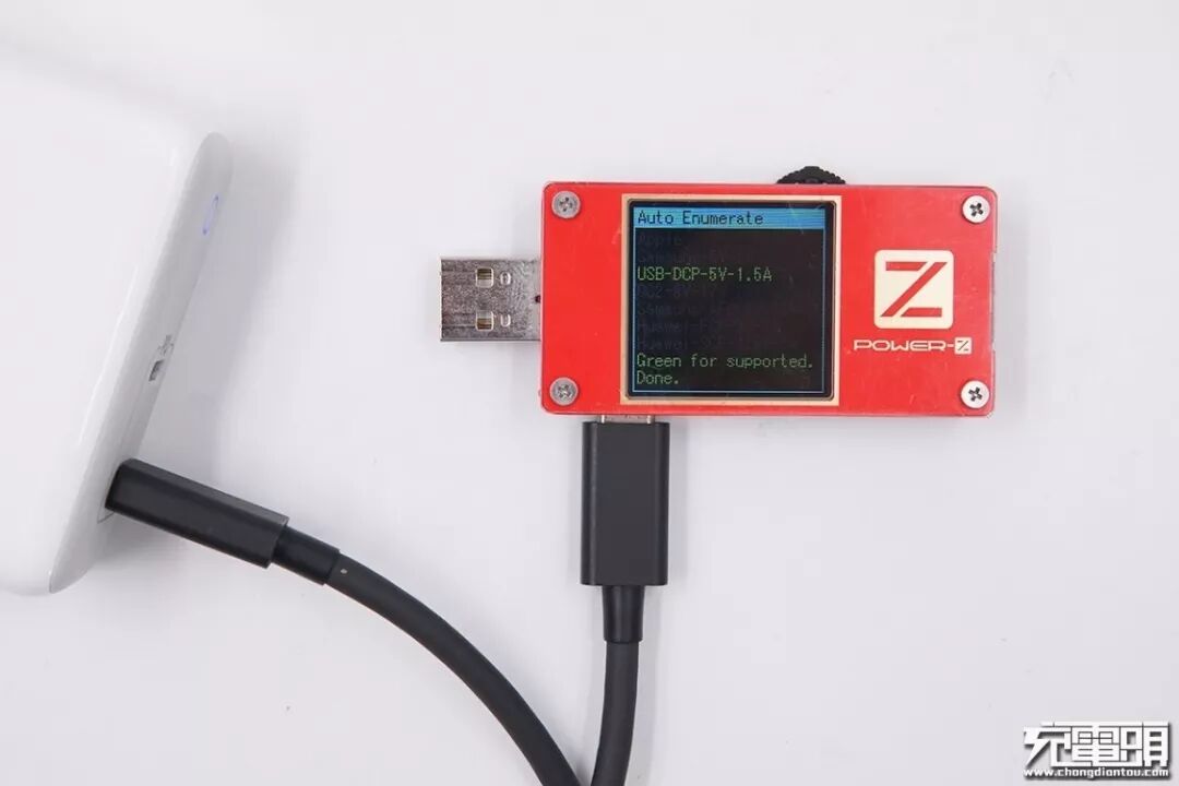 双口输出情况下两个USB-C口均支持PD快充,版本为2.0,共有5V/3A、9V/3A、15V/2A、20V/1.5A四档输出,最大功率30W。