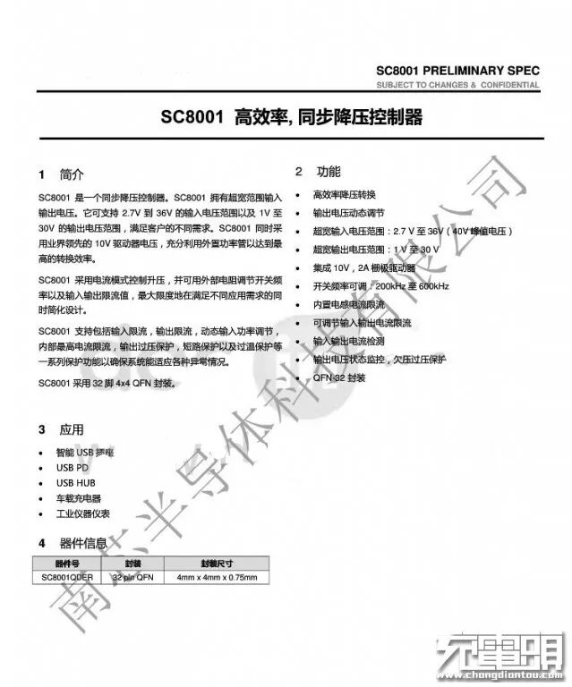 南芯SC8001详细资料。获取详细的datasheet资料,请在微信公众号后台回复关键词:SC8001。