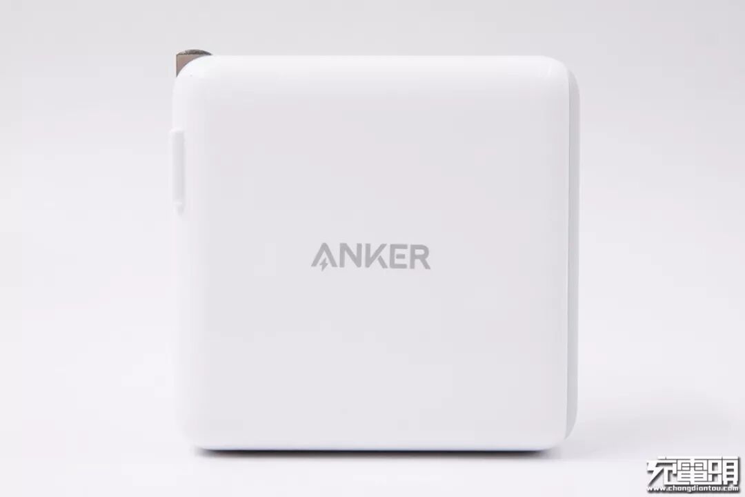 ANKER出品的产品大多数造型相似,比较圆润,本次上手的ANKER 60W PD GaN 双口充电器也不例外,周身没有棱角,边缘全部圆角处理。充电器主体使用阻燃塑料材质、整体呈白色,中央印制“ANKER”字母LOGO。充电器表面钢琴烤漆工艺,触感顺滑,然而很容易成为指纹收集器。