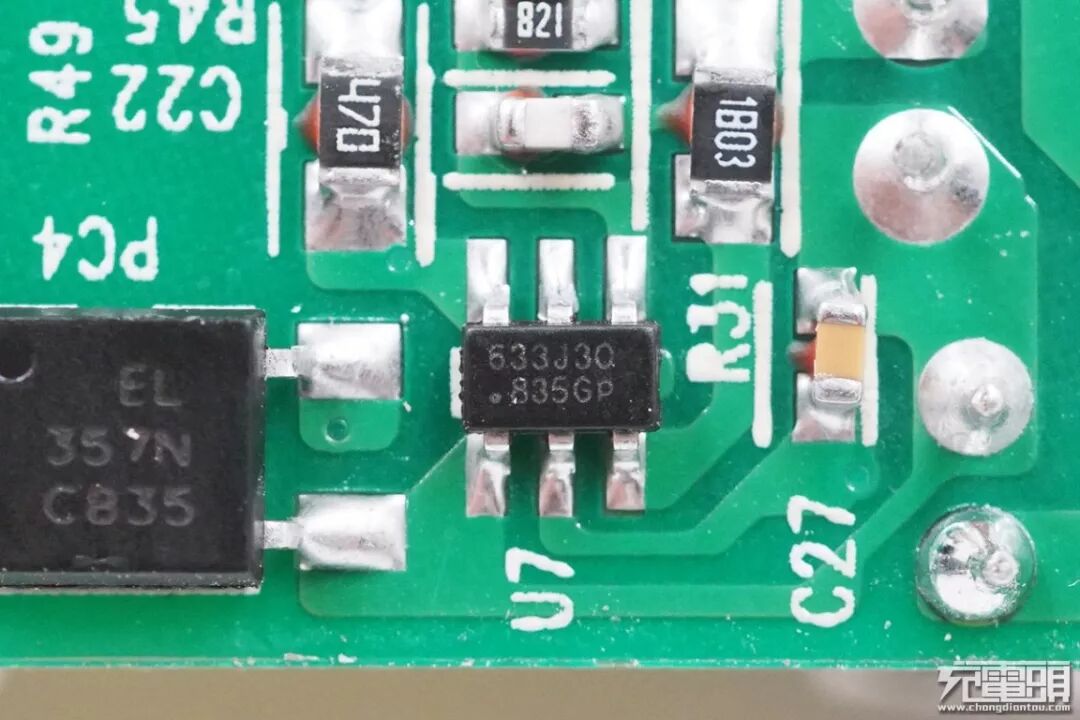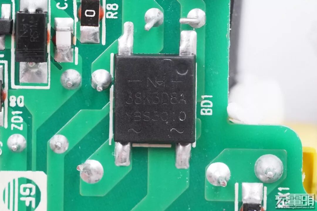 在USB-A接口的背面,采用易能微EDP3026作为两个USB-A口的协议芯片,支持多种快充协议。