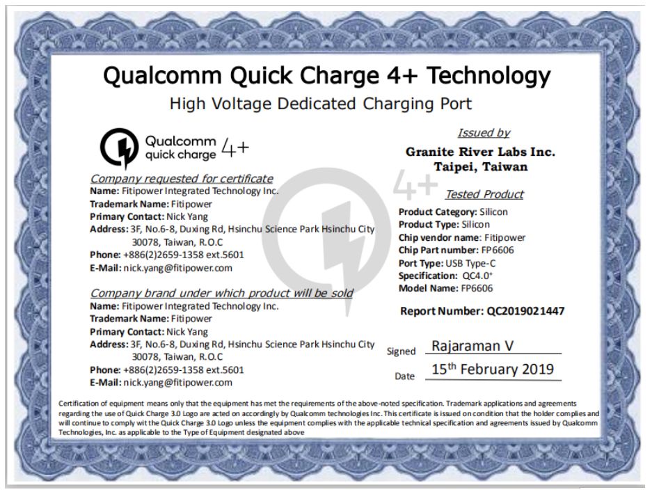 天钰在2015年开始QC产品布局,依循Qualcomm标准通过QC2.0/3.0,后续又陆续纳入各家手机品牌厂的自有协议,成为单芯支持多协议产品,FP6601Q QC3.0协议IC很快的成为行业标竿,有极高的市场占有率,月出货达10kk以上,各厂家纷纷对应脚位设计,但天钰持续以高质量与极佳的兼容性领先于同行;QC3.0协议IC后再度推出系列FP66xx新品,全面涵盖USB Type-C Power Delivery,针对多口自主管理以及对应USB Type-C PD应用提供绝佳经济的解决方案,可应用于适配器、车充、移动电源等设备,有助于缩短开发时间,快速实现验证,并加速产品上市。