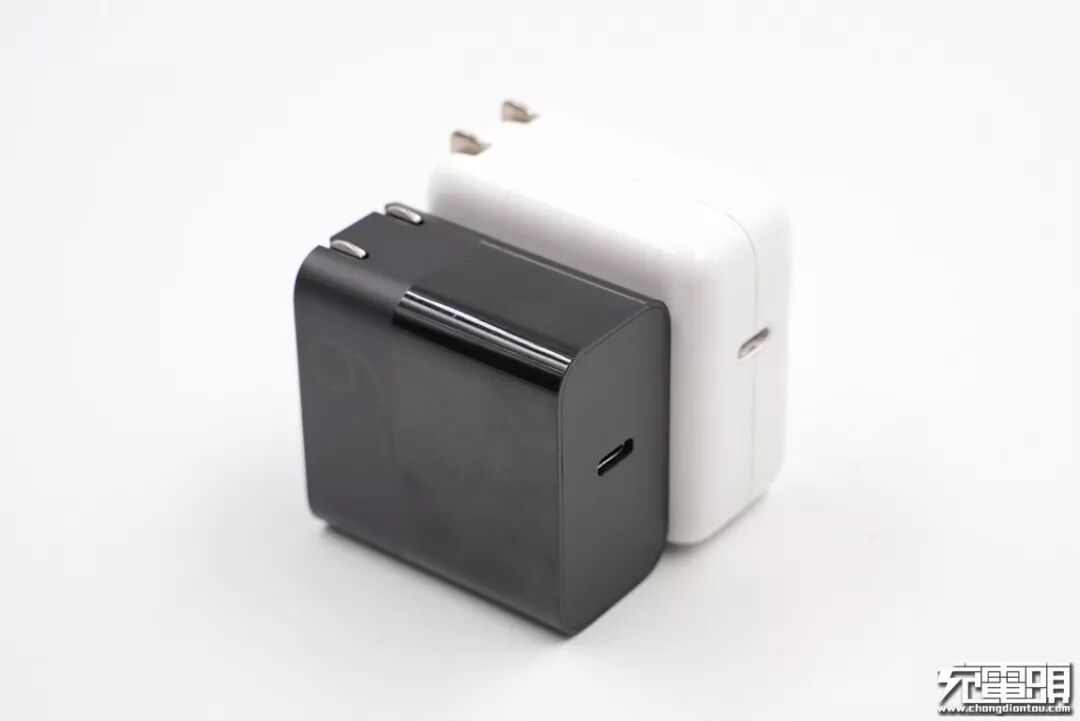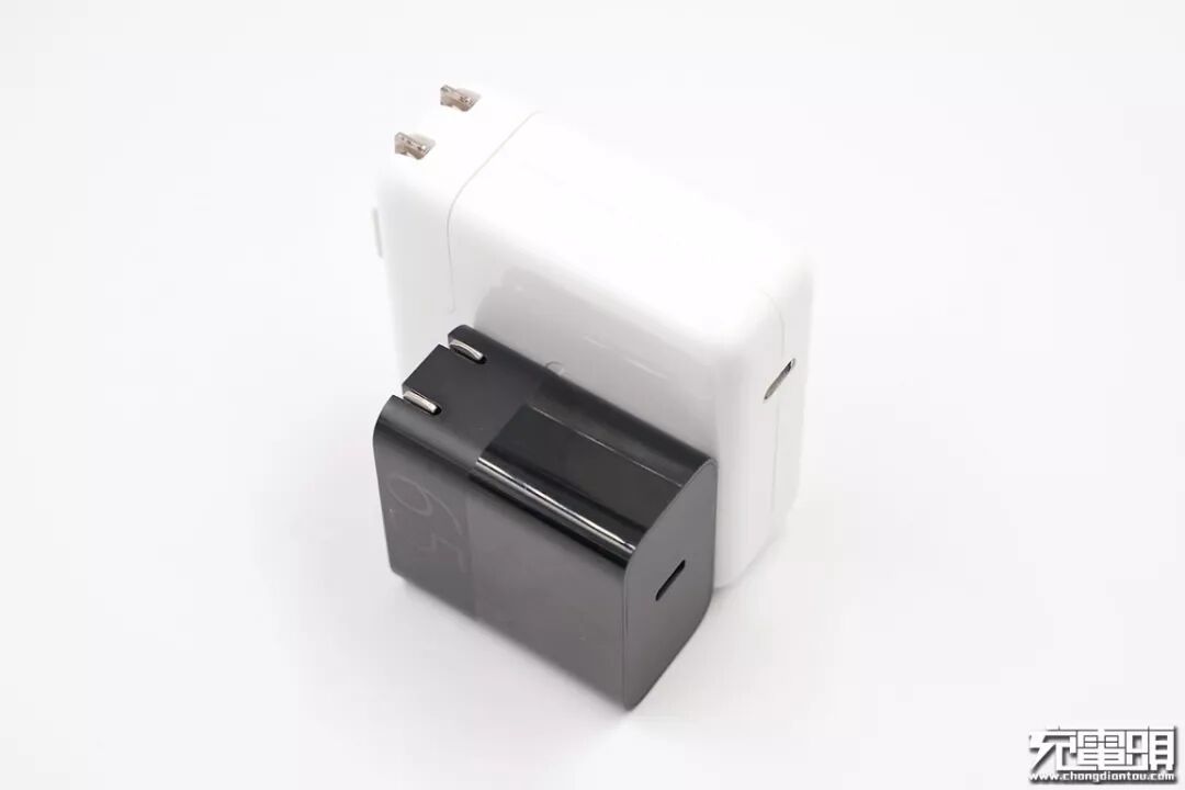 单独与苹果61W充电器对比时,体积小巧显得更为明显。