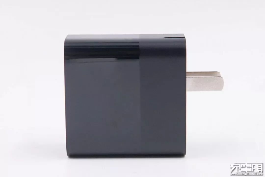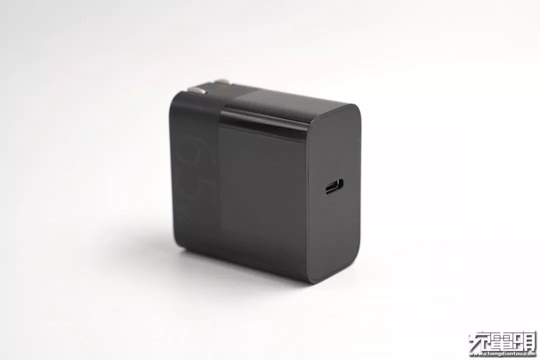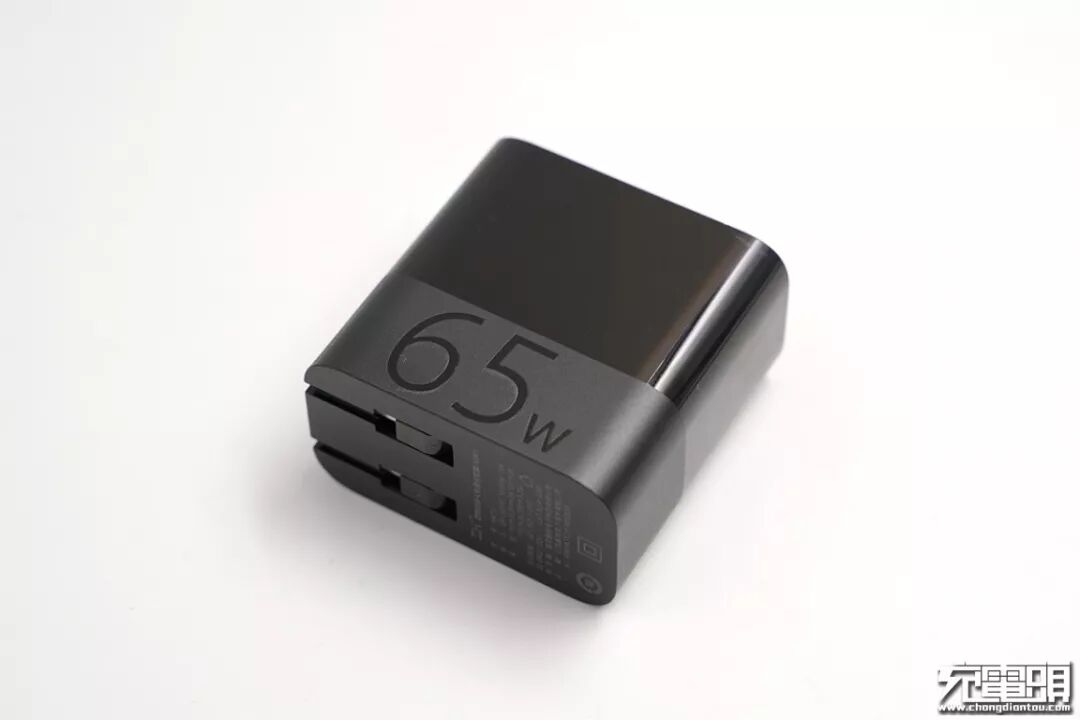 正面标有“65W”字样,同样做成了亮面质感,很直观的就能了解到这款充电器的功率大小。