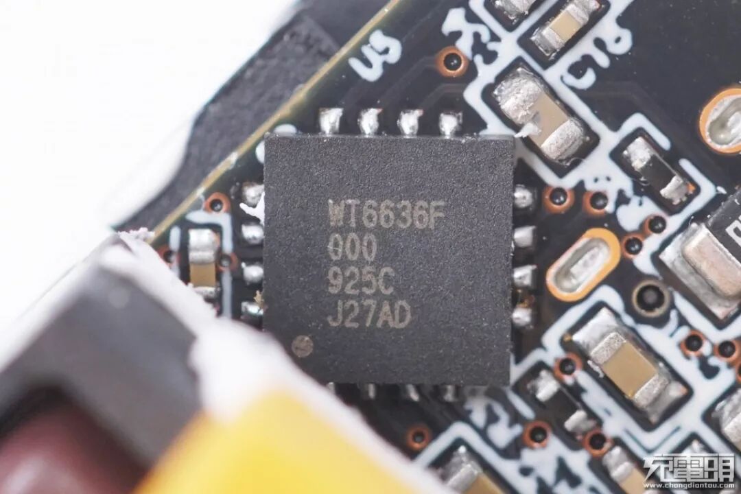 USB PD协议芯片采用Weltrend伟诠WT6636F。充电头网了解到,伟诠WT6636F是一颗通过USB-IF协会USB PD3.0(PPS)认证的协议芯片(TID号:1080018),此前该芯片已经被联想thinkplus USB PD充电器采用。