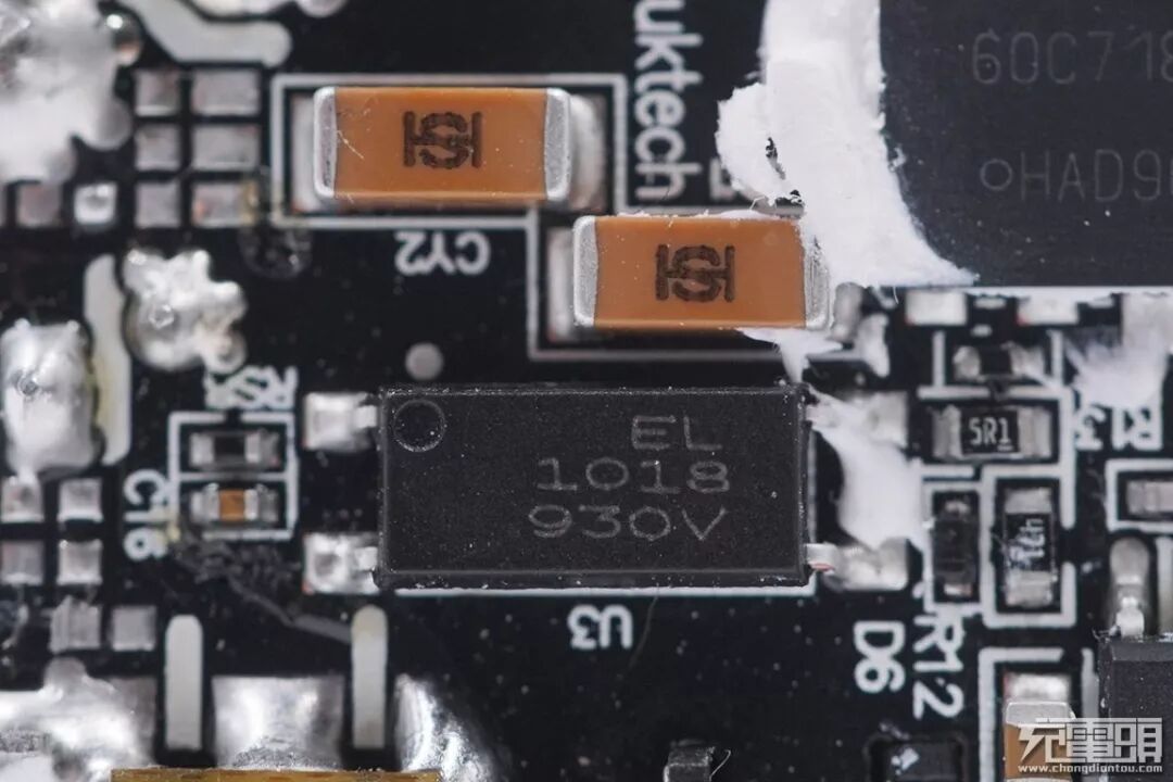 横跨在初级和次级之间的EL亿光光耦。上方是贴片安装的Y电容。