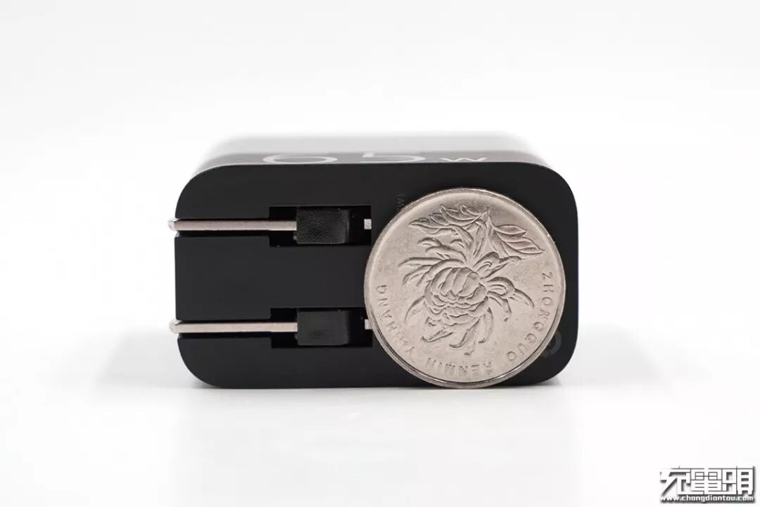 与输出口对立面是充电器插脚所在面,采用了可折叠式设计,方面日常收纳与携带。