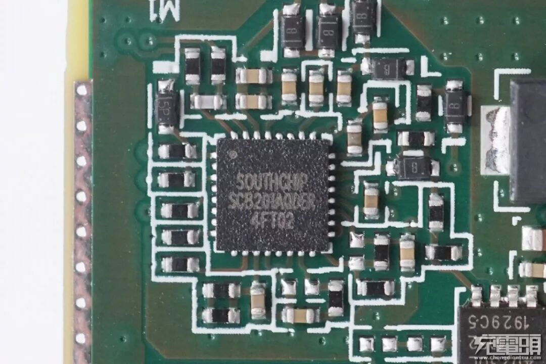 产品由立讯精密代工,电路板延续华为一贯的优秀作风,PCB边缘采用过孔封闭阻断电磁辐射,使用高质量元器件确保产品使用体验,内置南芯同步降压控制器做升压配合易冲半导体全集成主控,搭配安世半导体的MOS管,高压输出,配合手机内部的电荷泵降压,来实现更高功率的无线充电。