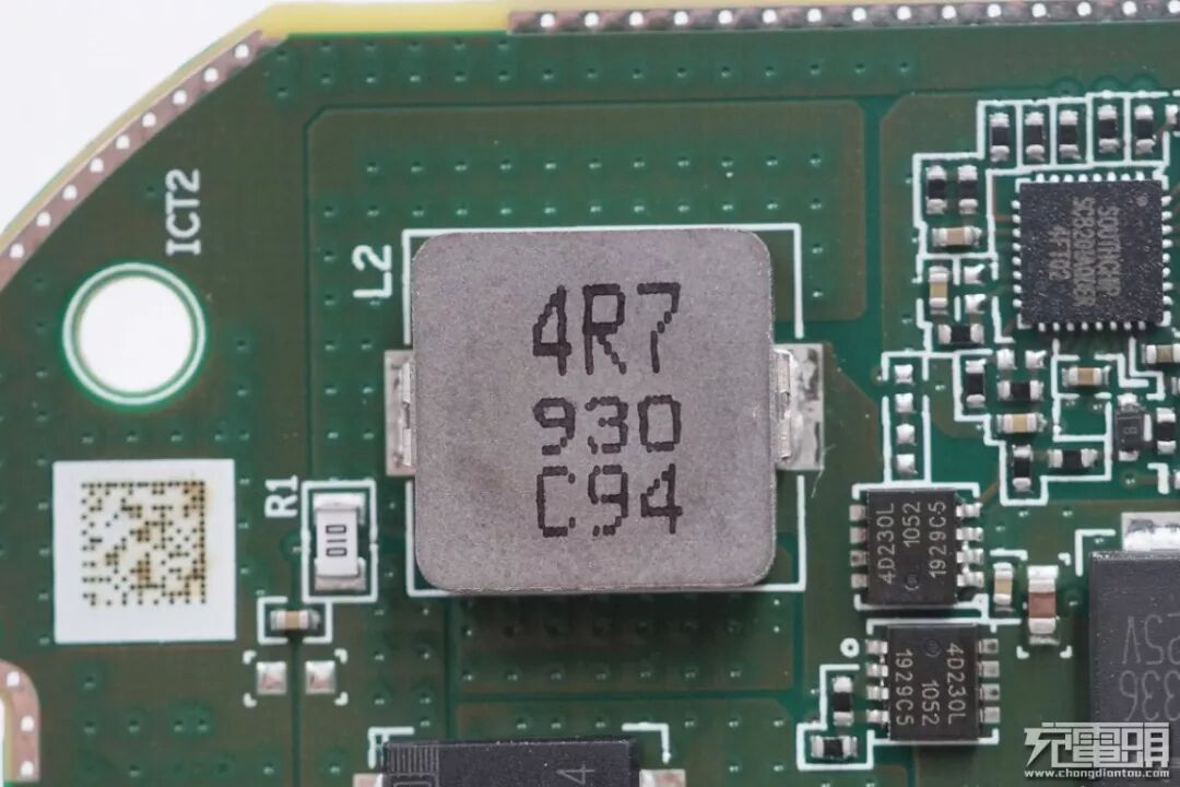 4R7升压电感,左下角白色010是电流取样电阻。