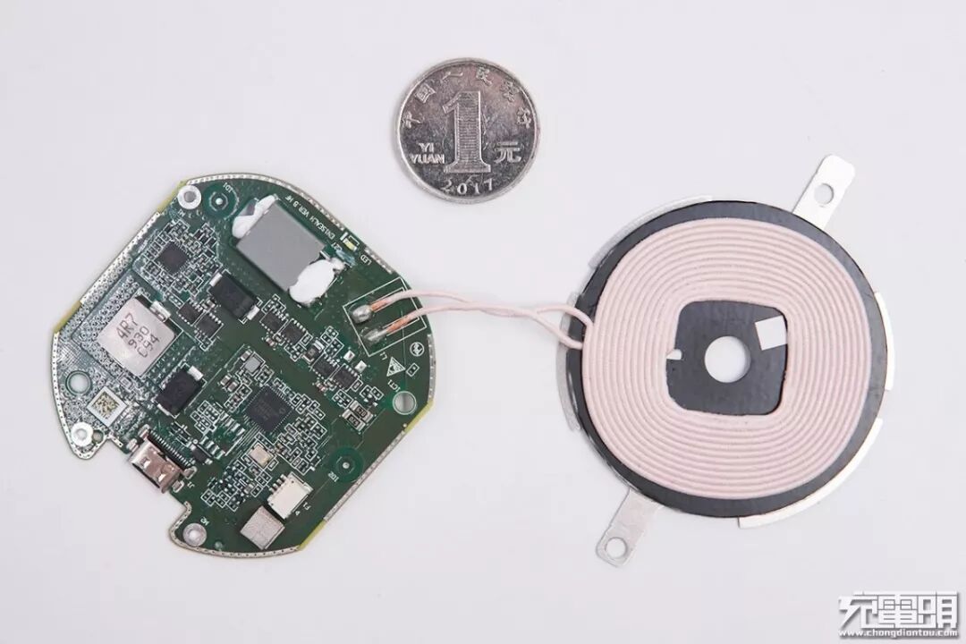 无线充电线圈和电路板,电路板依旧是熟悉的边缘过孔工艺,用来阻断电磁辐射。