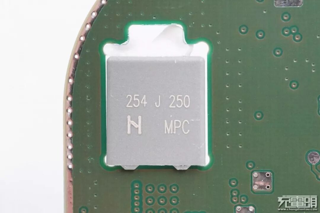接下来看电路板背面,电路板有一块镂空,放置了一颗MPC-CBB谐振电容。
