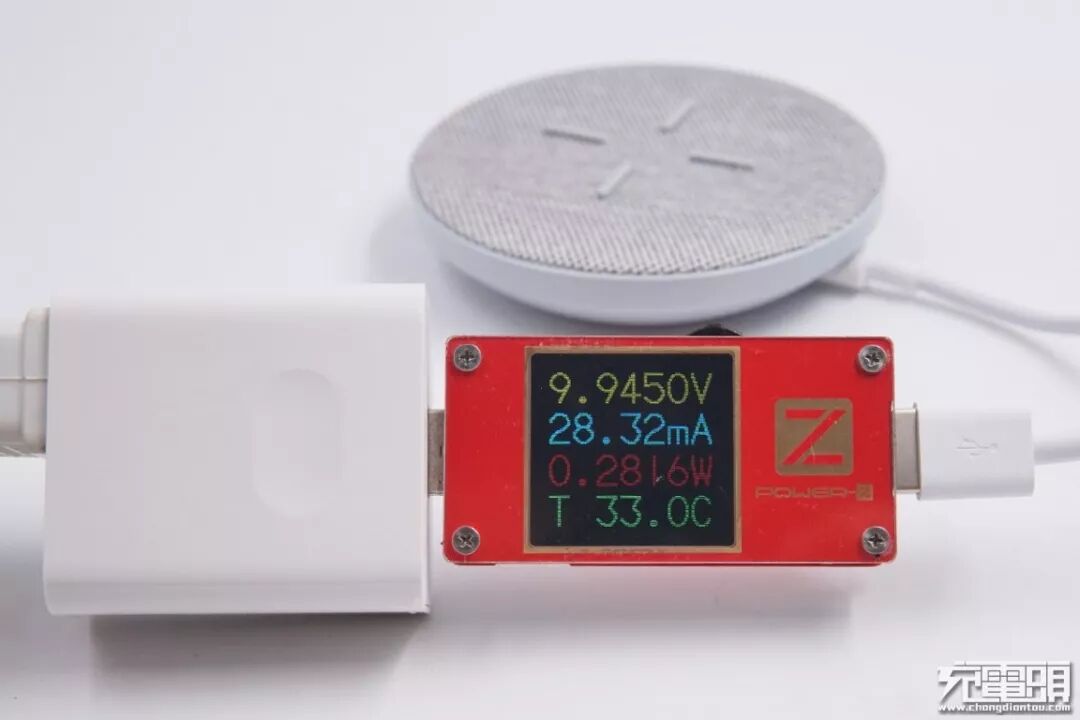 此时输入端功率12.8W左右(8.9V1.4A),经过效率换算,最终无线充电功率达到华为10W无线快充标准。