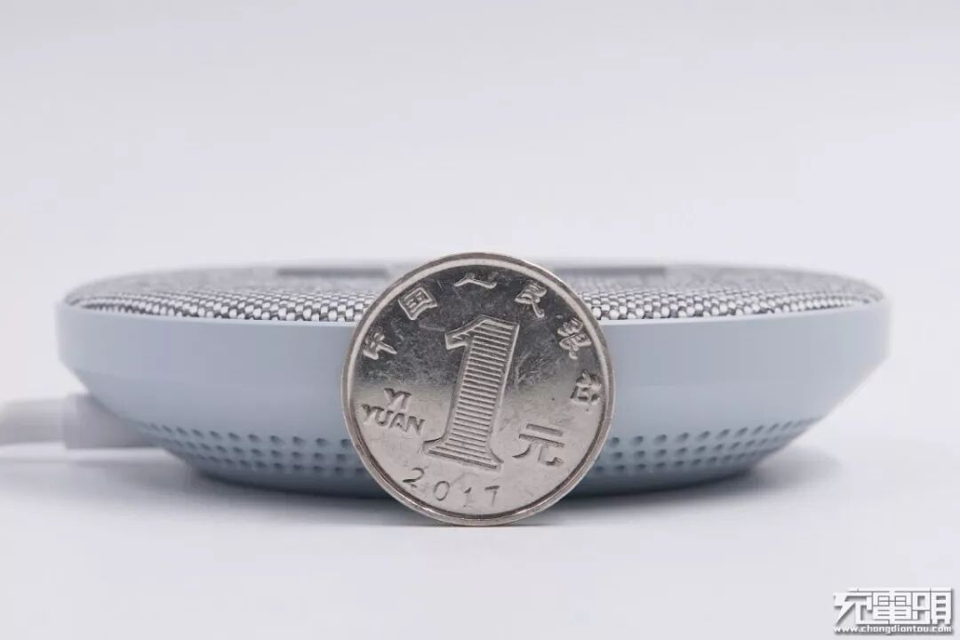 尺寸方面:产品直径90mm,因为内置风扇的原因,厚度约一元硬币直径的3/4,达20.85mm。
