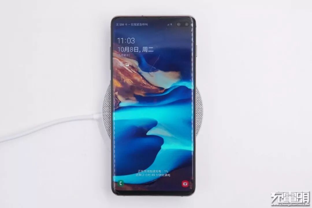 产品支持三星无线快充,测试三星Note10+手机,屏幕显示“正在无线加速充电”。