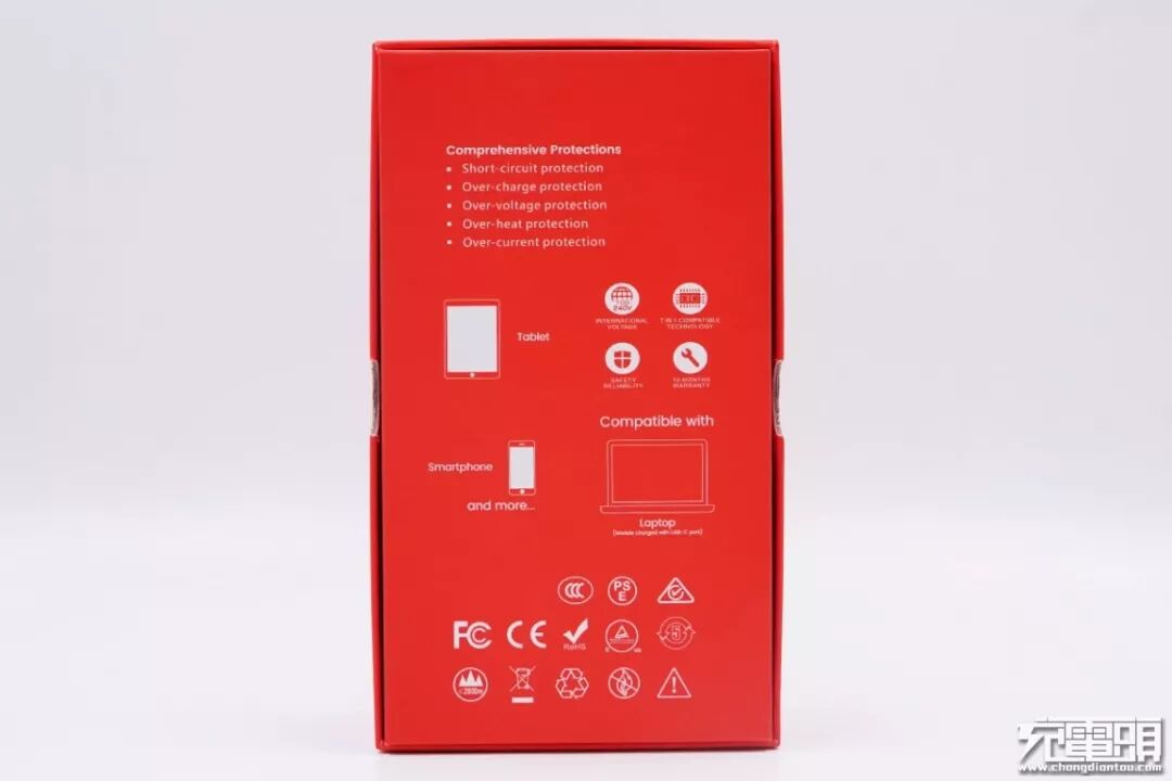 包装盒背面印着产品的功能,适用的设备类型等。
