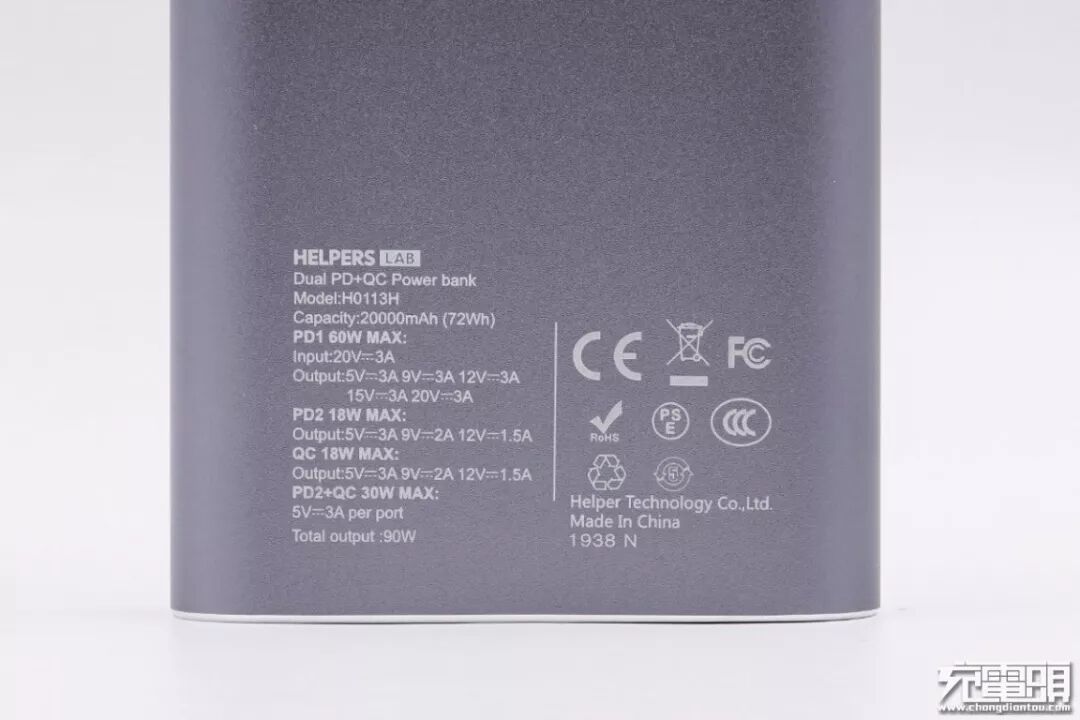 二、HELPERS LAB 20000mAh 60W 双PD+QC移动电源拆解