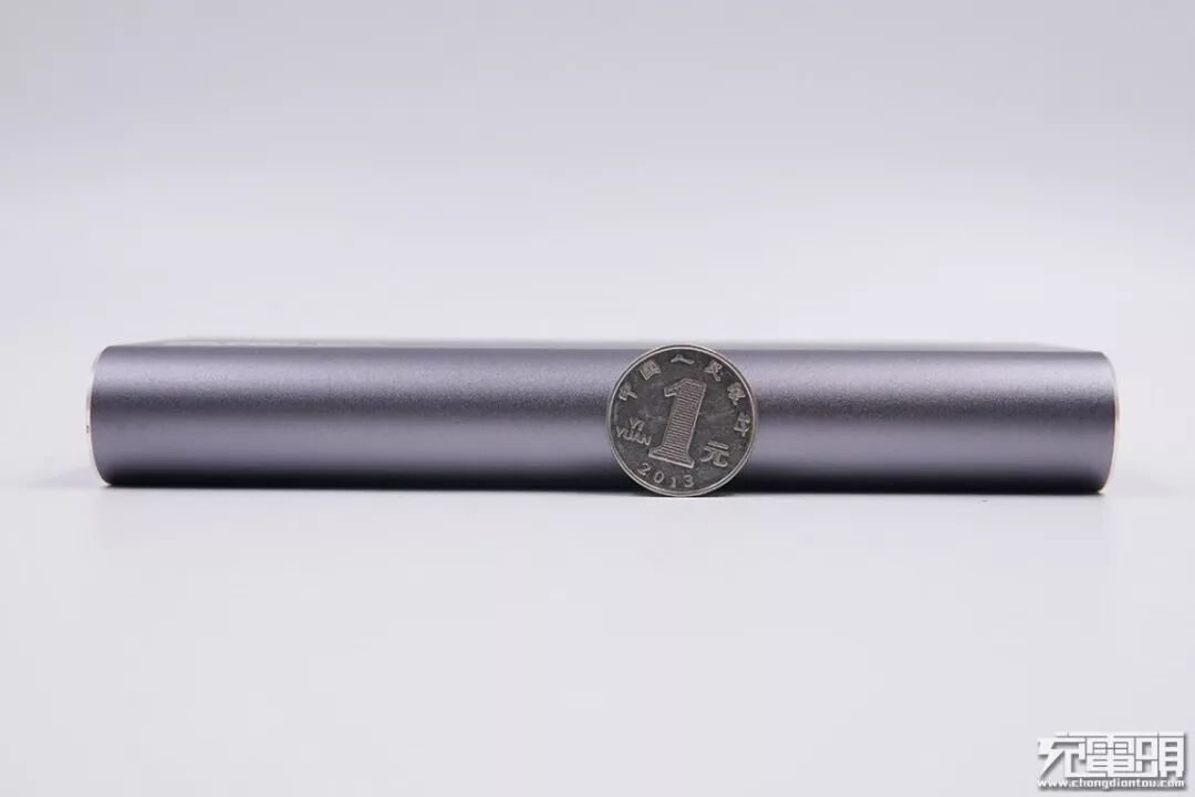 侧面厚度与1元硬币对比,与1元硬币的直径接近。