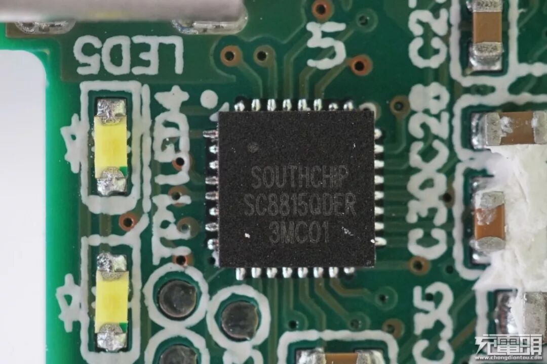 通过拆解可以看到,这款移动电源内部结构十分复杂,里面采用了智融SW3516是一款高集成度的QC4+快充芯片,集成度高外围元器件少,负责A口和C口输出。以及一颗南芯SC8815升降压IC,具有欠压保护,过压保护,过流保护、短路保护和热关断保护等多种保护功能,用于双向60W输出。USB PD快充协议芯片则采用了赛普拉斯CYPD3171,能够支持支持QC4.0、APPLE 2.4A,AFC、BC1.2等充电协议,采用英集芯 IP3254作为电池组保护,提供多重保护。