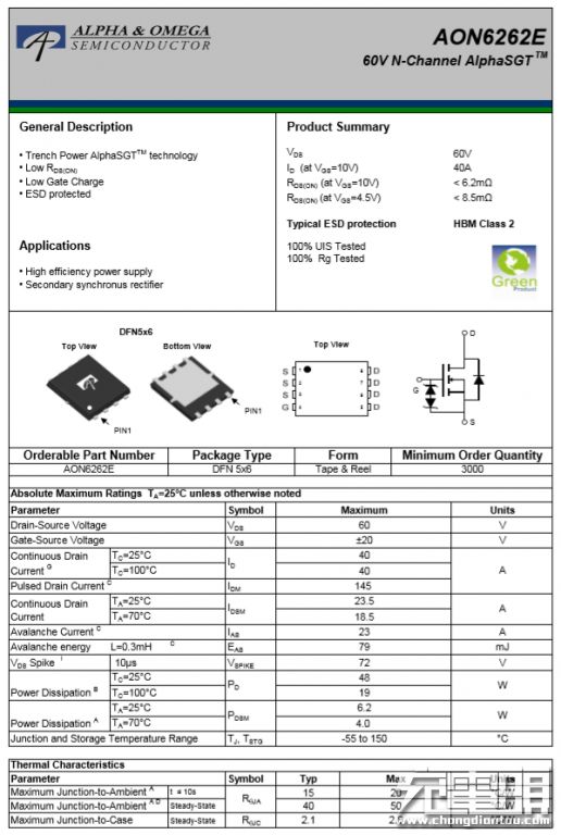 AOSMD AON6262E 详细资料。