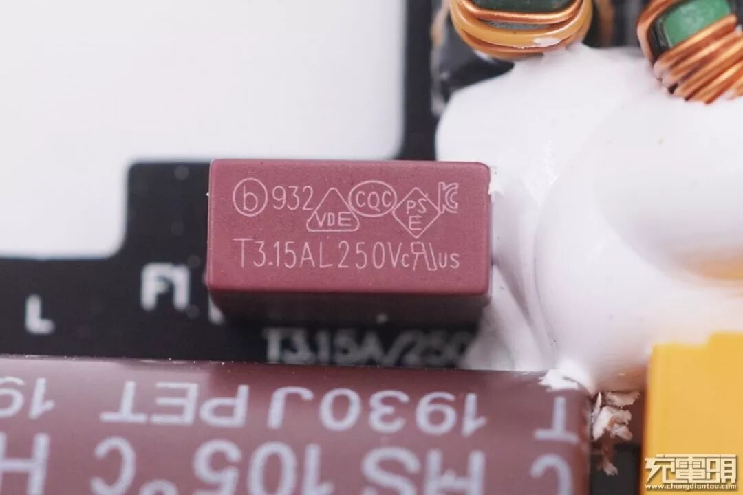 输入端特写,共模电感和保险丝。