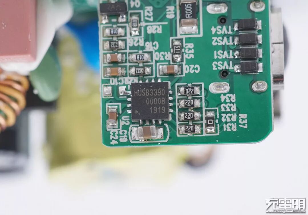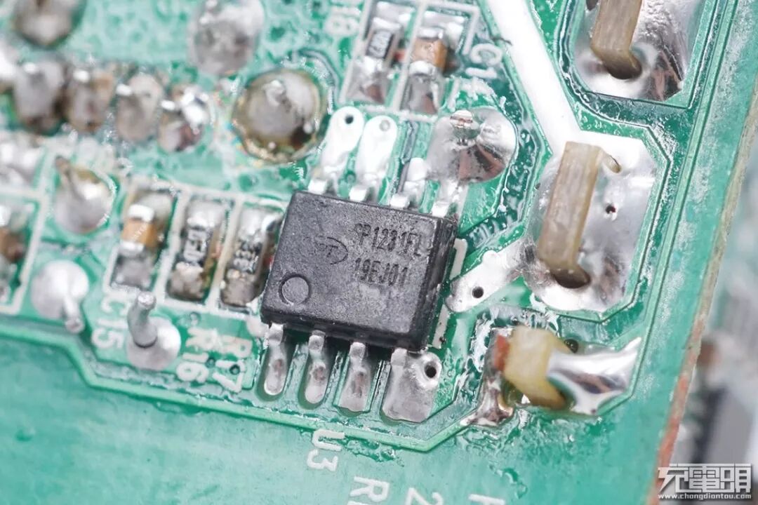 去掉导热垫,下面就是整个充电的主控芯片,整个PCB板看起来非常简洁。