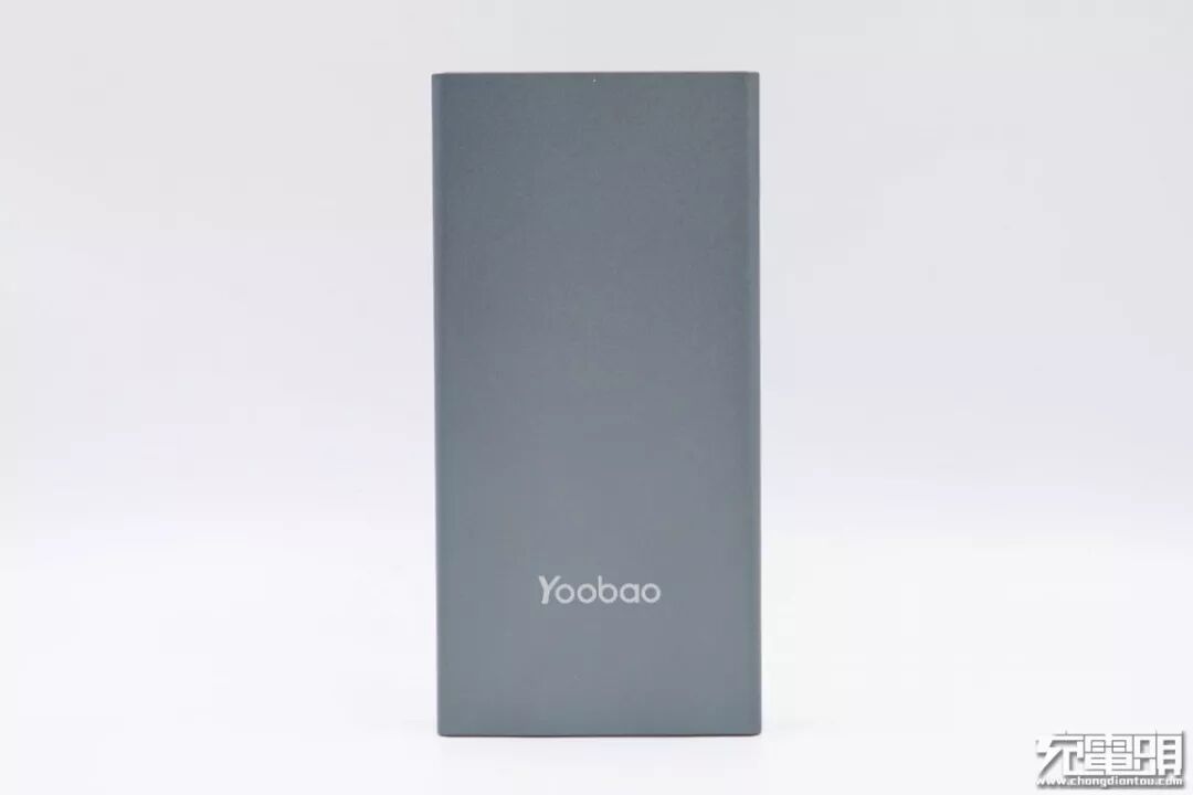 这款羽博移动电源采用金属机身壳,外壳进行阳极氧化处理呈陨石灰色,并且表面进行喷砂处理手感细腻,侧身为光滑弧面过渡不硌手。整个移动电源设计非常简洁,只有正面下端有一个镭雕的“Yoobao”品牌logo。