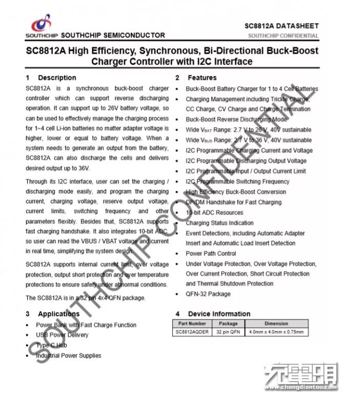 SOUTHCHIP南芯SC8812A,支持 I2C 接口,是一颗高效率的同步双向升降压芯片。