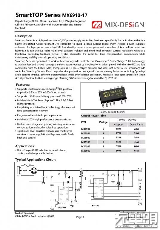 近日,苏州美思迪赛半导体技术有限公司(MIX-DESIGN)推出了一个全新的超高集成度的PD快充套片系列,初次级功率器件全内置。该系列最大功率可大60W,为最新SmartTOP系列。