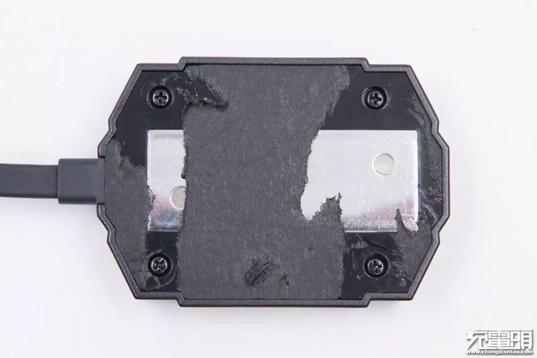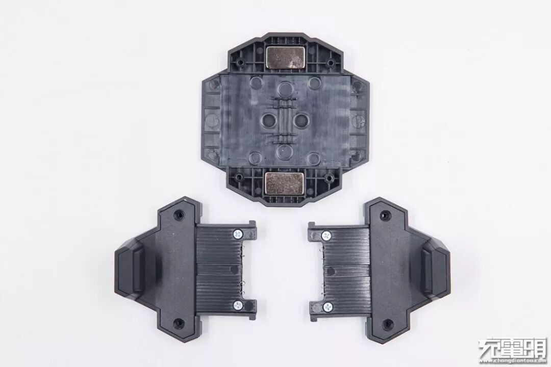 拆掉螺丝取下外壳,内部两端是磁铁,两侧的支脚边缘都有四根弹簧。