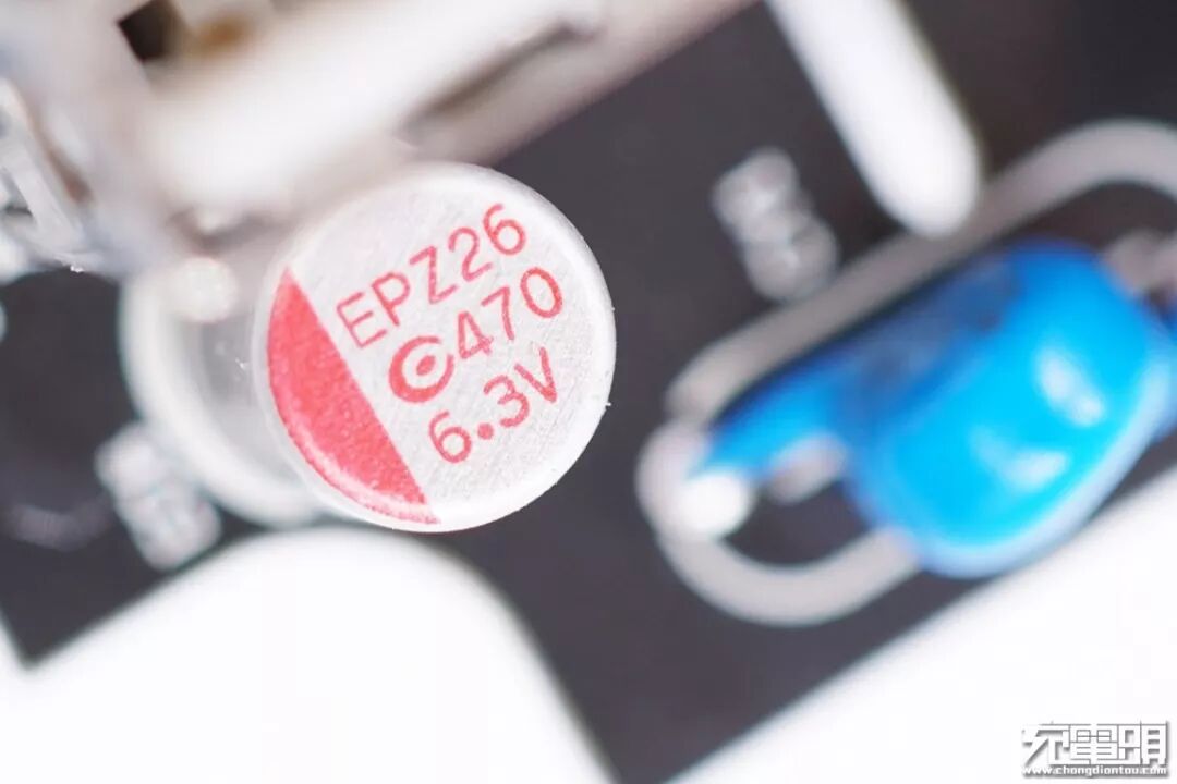 另外一颗输出滤波固态电容,规格一样为470μF 6.3V。