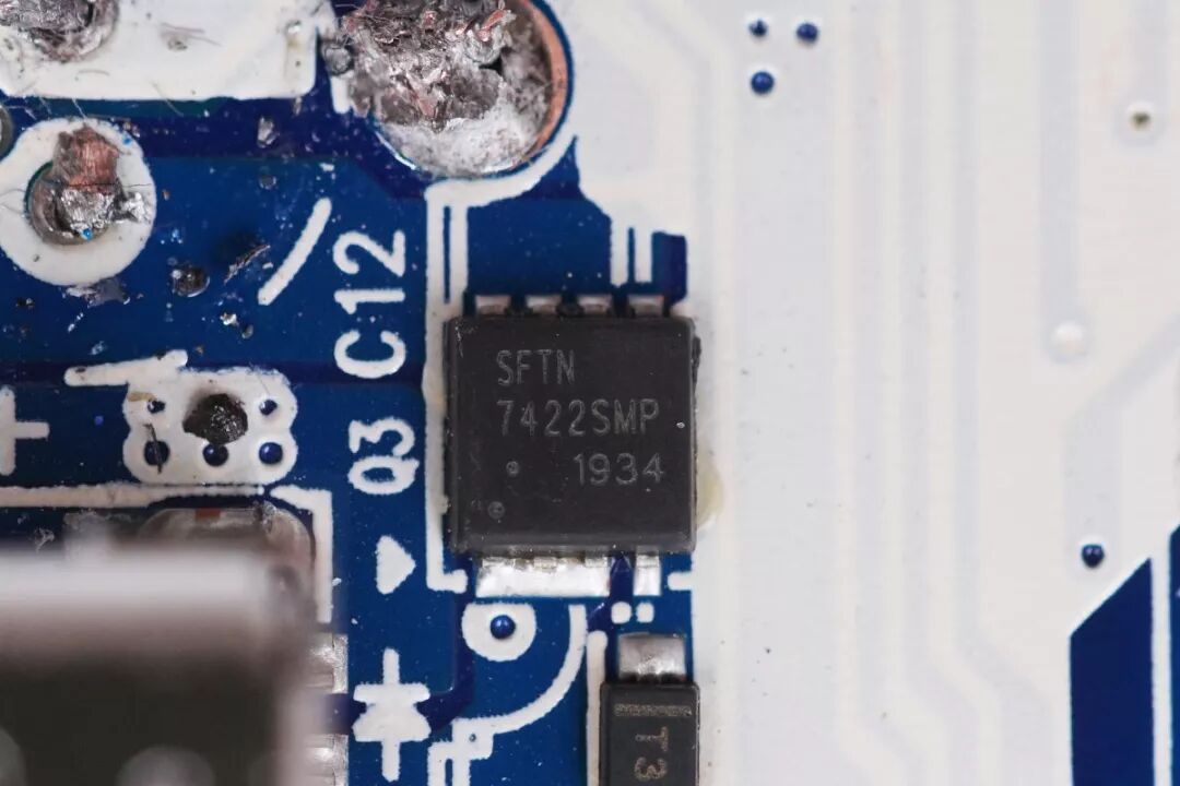 主控芯片旁边是次级同步整流MOS管,丝印10N070,100V耐压,NMOS管。