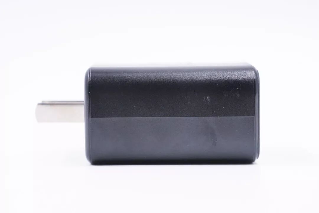 本次拆解的是国行版本,整个充电器采用黑色机身外壳,且表面全部进行了磨砂处理,不粘指纹,正面中心是闪电logo以及“Super Fast Charging”字样。
