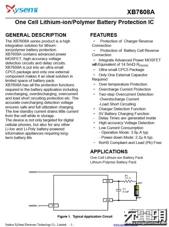 苏州XYsemi赛芯微XB7608A 多合一锂电保护芯片,两颗并联提供更大输出电流。