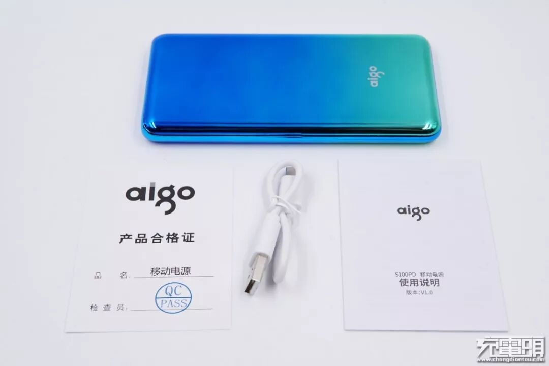 前不久充电头网有拆解过aigo一款二合一移动电源AC500PD,这款移动电源小巧便携,还可更换插脚规格很适合携带外出旅行。最近充电头网又拿到aigo两款10000mAh规格的PD双向快充移动电源S100PD和F1000PD。这两款移动电源均配备有1A1C接口,并支持18W PD双向快充。下面我们先对aigo 10000mAh PD双向快充移动电源S100PD进行拆解,看看里面用料如何。