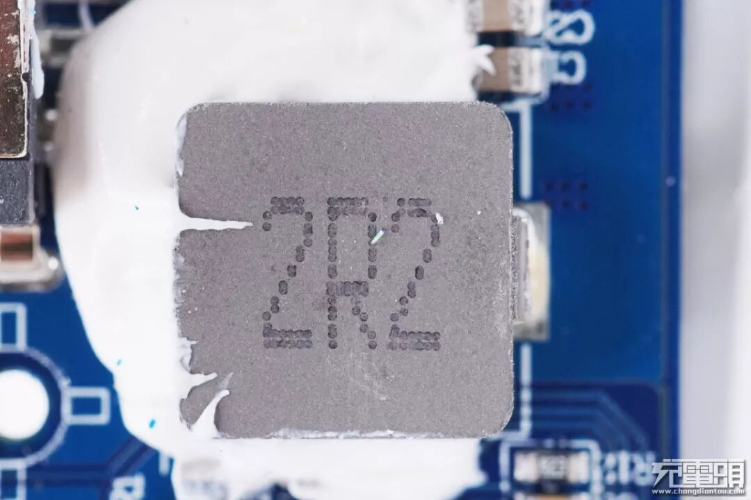 将PCB板拆下,板子正面上是电感和几颗芯片等元器件。