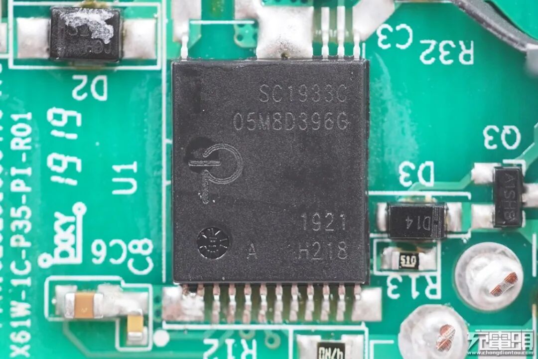 充到头网拆解发现,这款产品的AC-DC部分采用纳微半导体氮化镓功率芯片、安森美PWM主控、MPS同步整流控制器以及恒泰柯同步整流MOS;USB-C接口输出采用慧能泰HUSB339协议芯片,USB-A接口输出由南芯SC8903二次降压,并采用天钰FP6601Q作为协议芯片。1A1C两个接口智能输出,实现功率智能分配。
