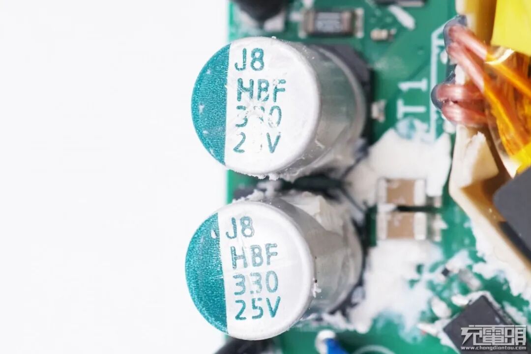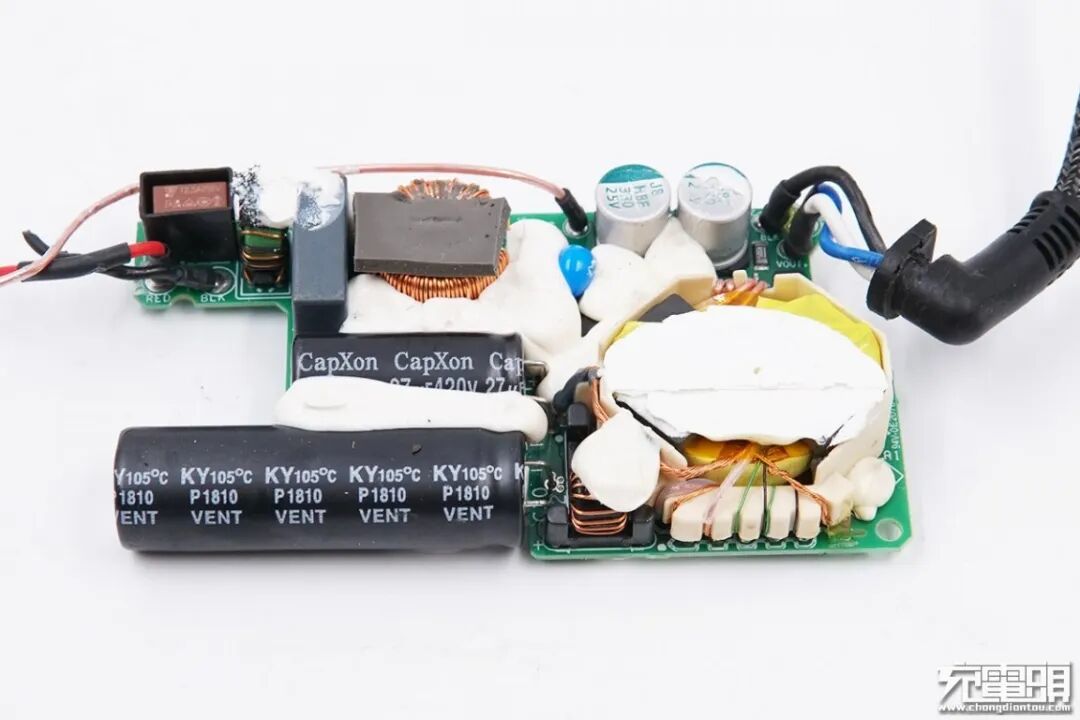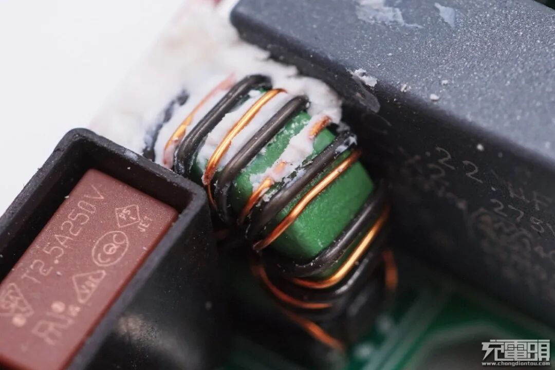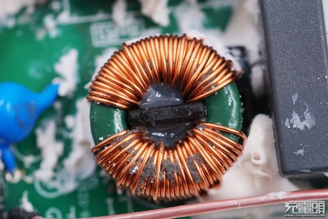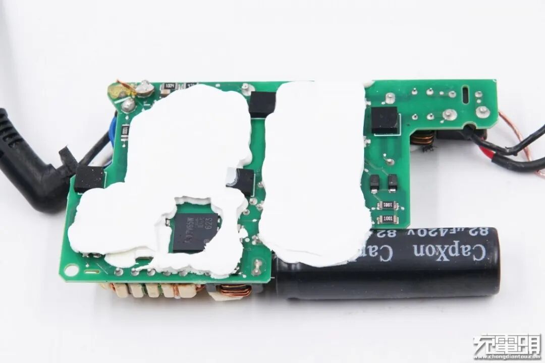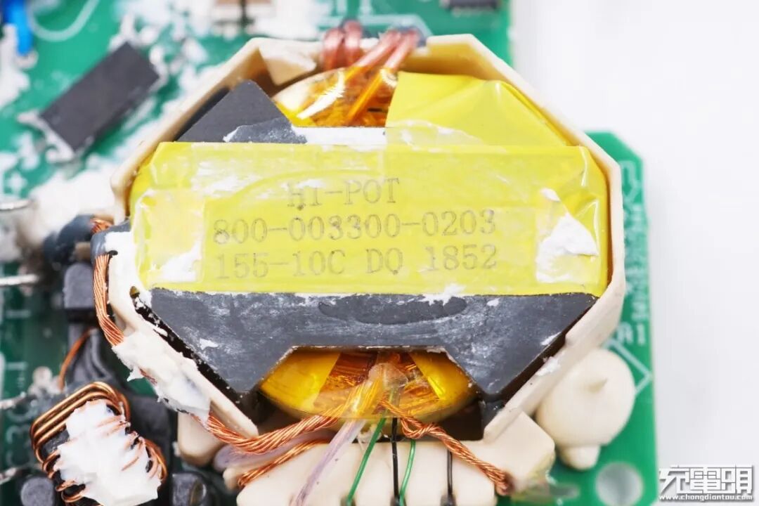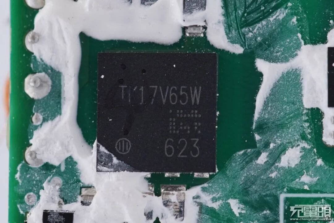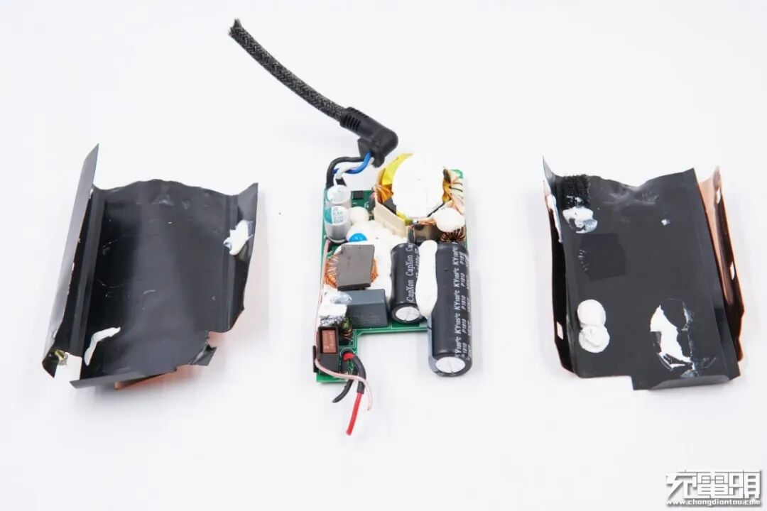 充电头网通过拆解发现,充电器使用了安森美初次级方案、东芝TK17V65W、英飞凌BSC040N10NS5等多款知名厂家的芯片,用料扎实。此外内部使用金属散热片围了一圈,PCB板正面和背面都大量注胶,内部稳定性和散热性能都很好,整体做工上乘。