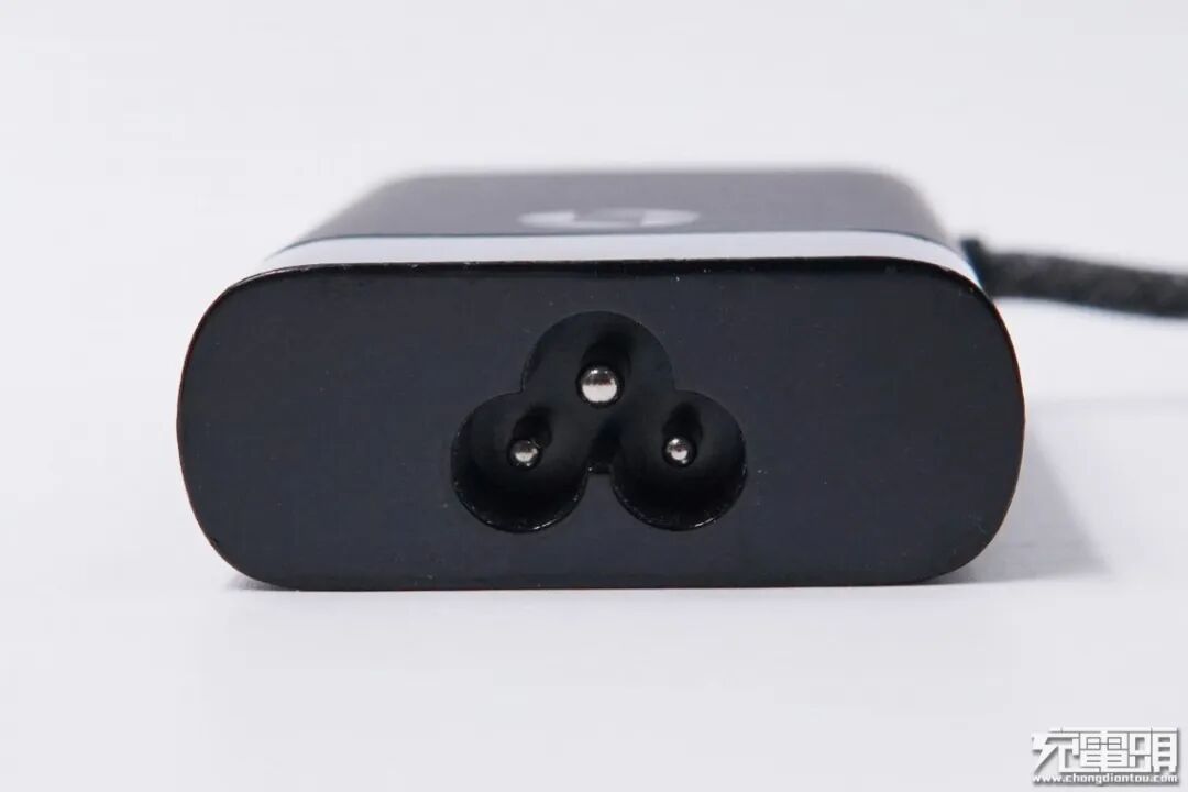 输入端是三脚梅花接口,针对不同地区,更换对应当地的电源线即可。