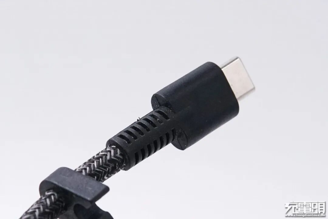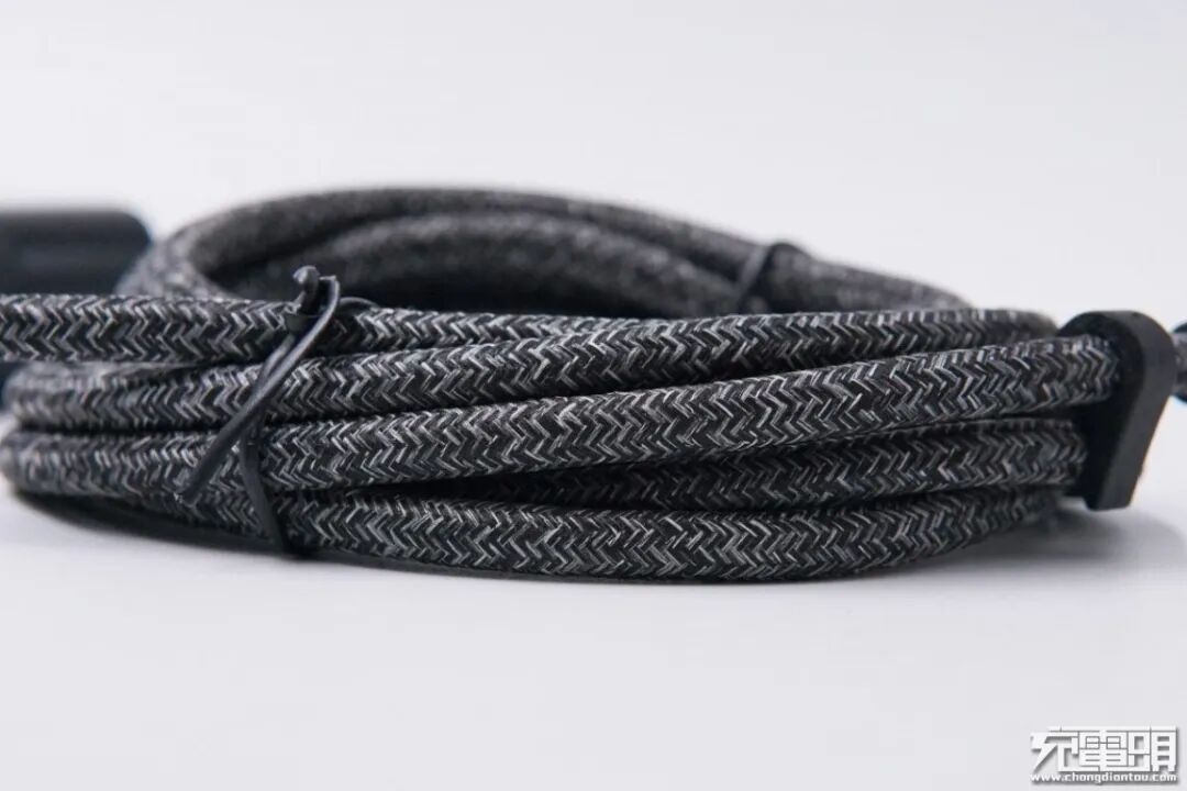输出线的编织外衣采用灰黑白三种颜色的细线交错编织而成,以增加美感,此外线身摸上去手感也很好。