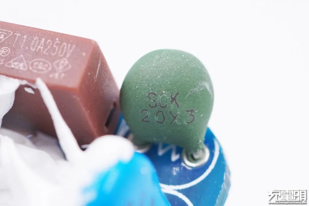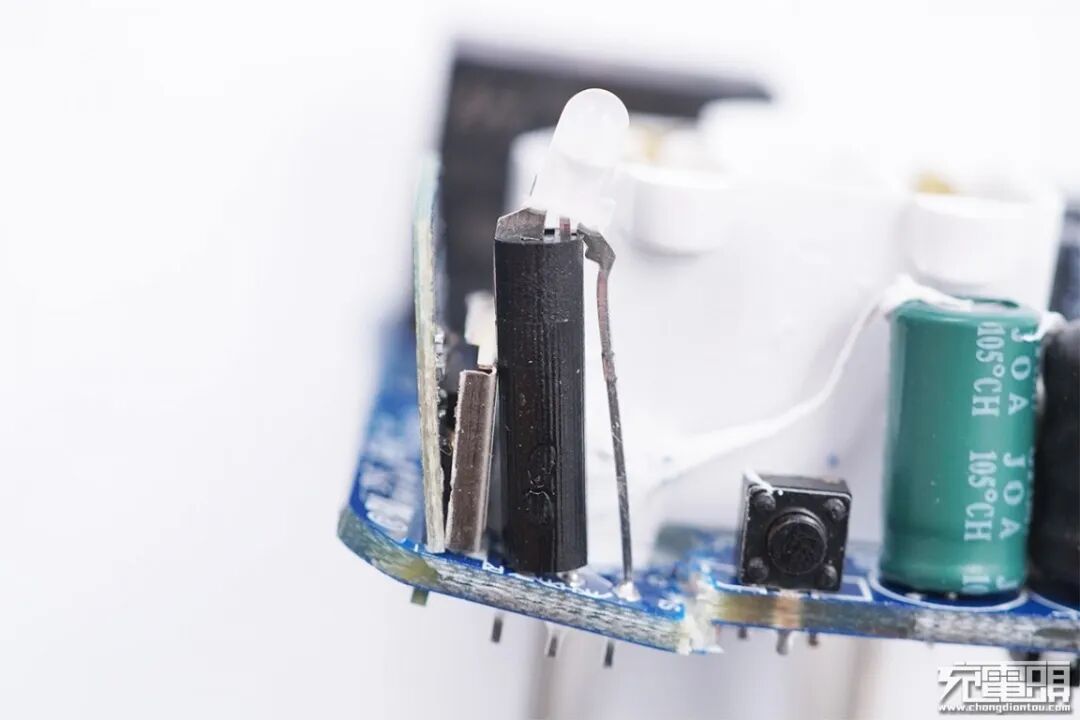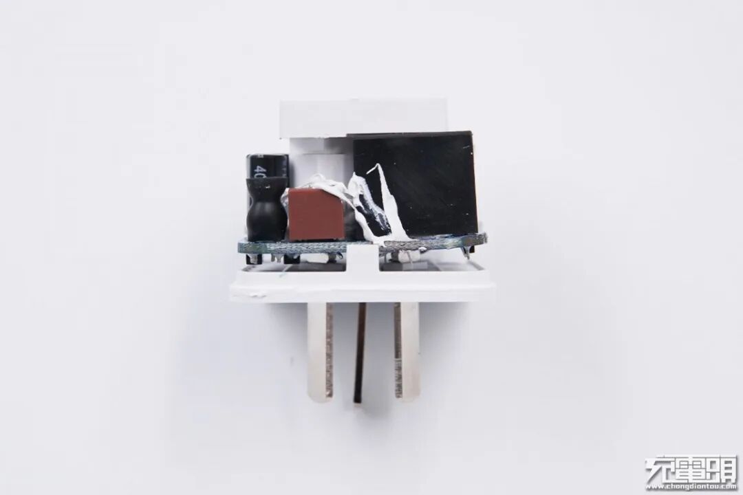 充电头网通过拆解发现,内部空间有限,但是元器件设计布局清晰有条理,侧面也可以体现出航嘉的功底。内部使用了芯朋PN8016降压配合稳压为物联网芯片供电,而电解电容分别采用艾华和SAMXON,用料扎实。各元器件全部打胶进行加固,稳定性有保障。