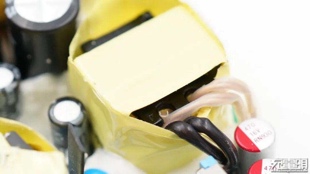 另一颗共模电感特写,使用绝缘胶带进行包裹。