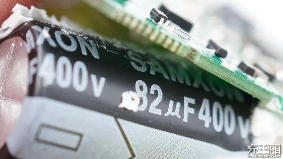 USB-C接口所在电路的初级滤波电解电容,规格为400V 82μF,SAMXON品牌。