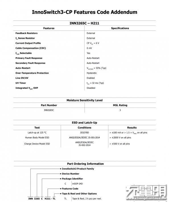 INN3265C信息规格资料。ANKER 65W氮化镓4口桌面PD快充充电器、ANKER安克18W USB PD充电器均采用了这颗主控芯片。