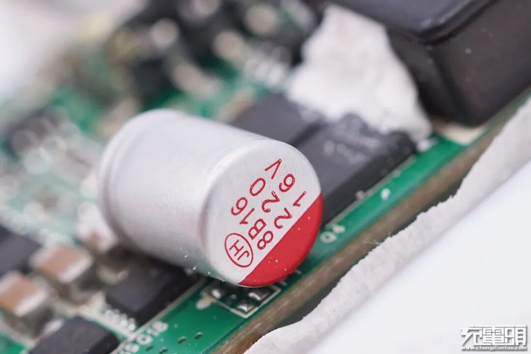 固态电容来自南通江海,规格16V 220μF。采用卧置,降低PCBA的整体厚度。