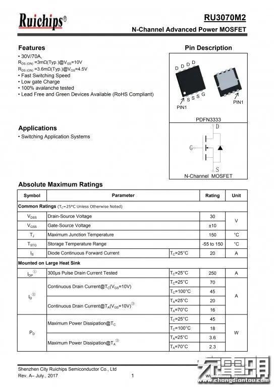 锐骏半导体RU3070M2详细规格资料。