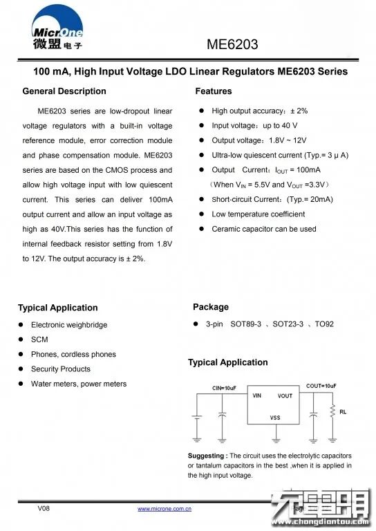 微盟ME6203规格资料。