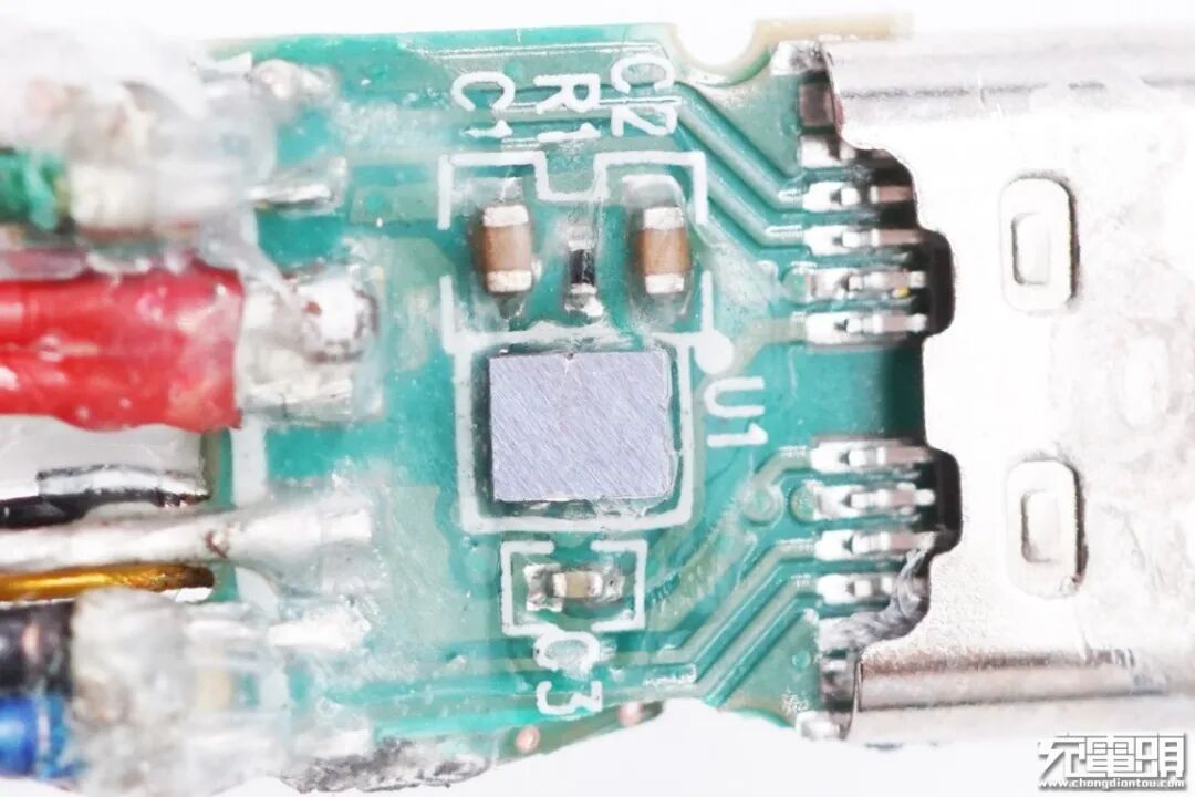 E-Marker芯片特写,无丝印,旁边电力线芯焊点饱满。