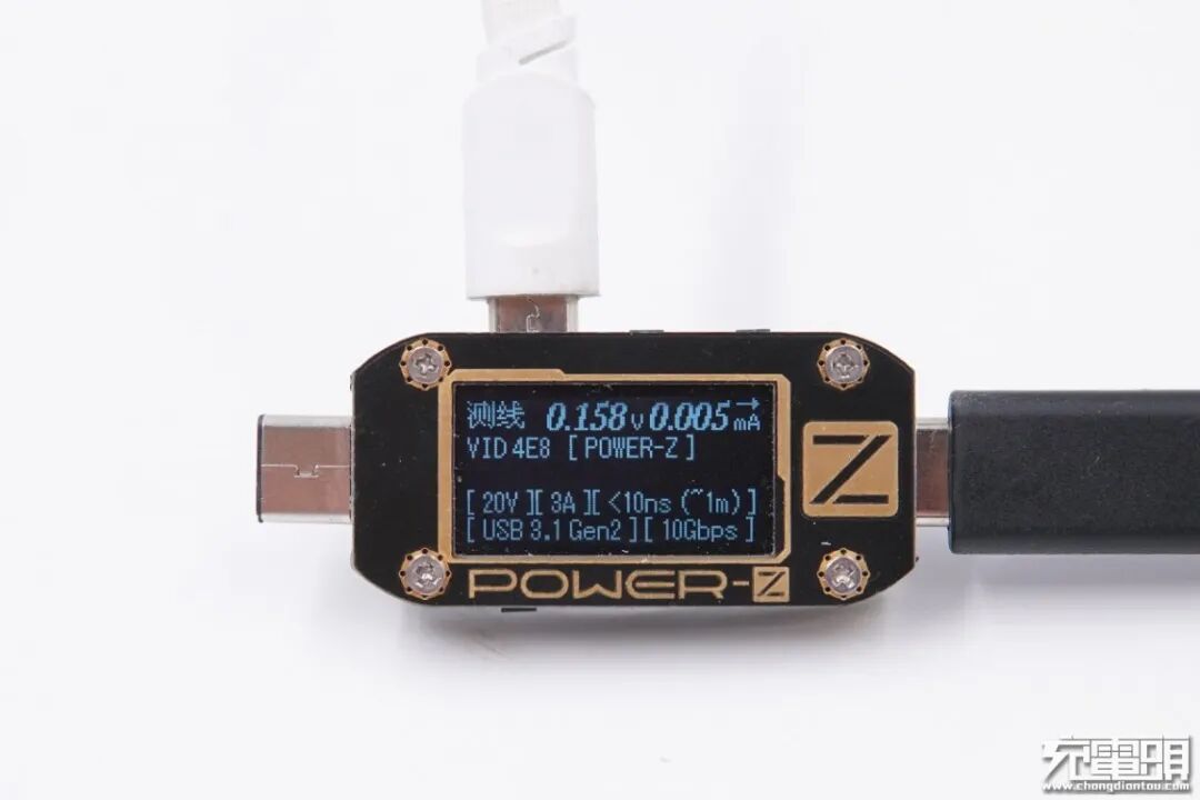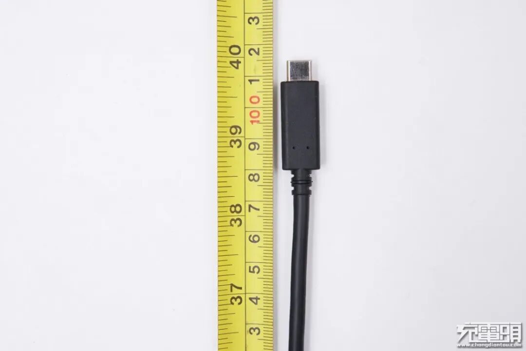 这根快充CC数据线长1米,线身粗壮同时柔韧性好。经过充电头网实际测试,显示该线缆带有E-Marker芯片,除了支持USB 3.1 Gen2(10Gbps)数据传输标准,测试显示该线缆还支持60W充电,并且经过长时间充电测试,线缆正常工作,没有出现异常情况。
