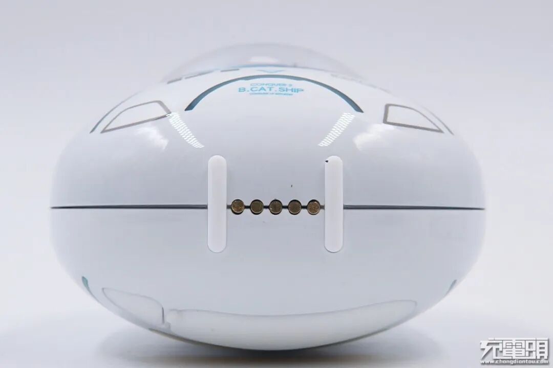 底部是两条白色软垫以及5个充电触点。