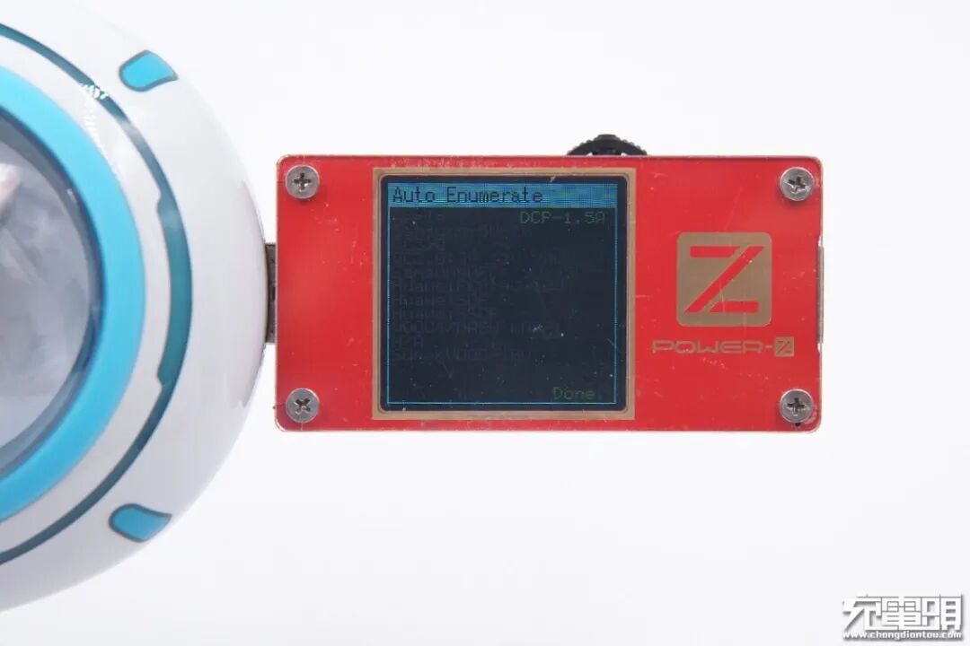 使用ChargerLAB POWER-Z KT001检测顶部USB-A1口的输出协议,显示只支持DCP协议。