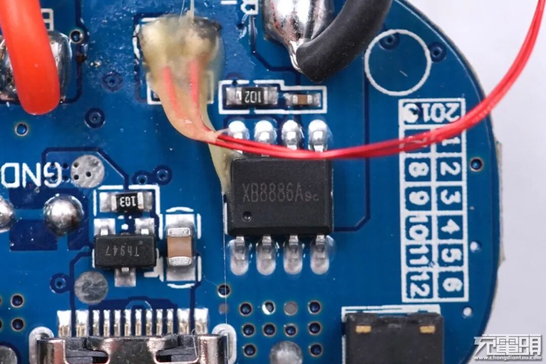 充电头网通过拆解了解到,这款移动电源内部采用英集芯IP5328P作为主控芯片,并采用赛芯微XB8886A锂电保护芯片,以及为电芯配备热敏电阻监控温度,电芯镍片点焊连接,极耳处有海绵填充,导线和母座焊接牢固,底座有两块大磁铁吸附机身,平时放置时不易摔倒。整体做工扎实。